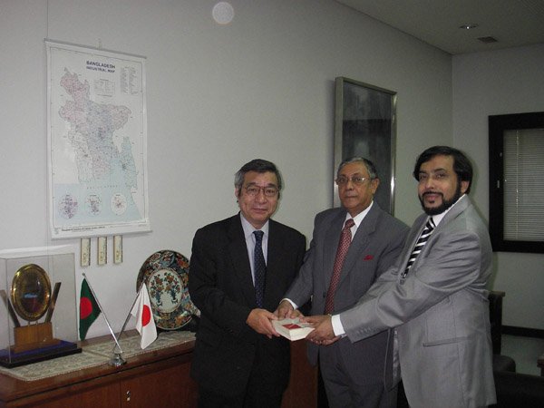 H. E. The Ambassador of Japan, handing over the gift of Holy Quran to the President and the Executive Director of Institute of Hazrat Mohammad (SAW)