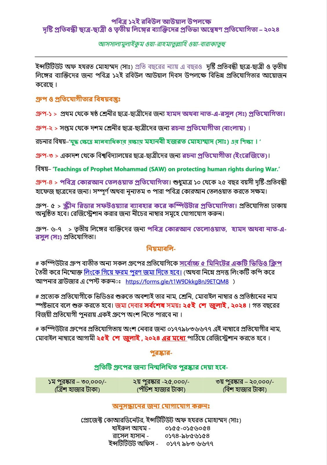Post:Institute of Hazrat Mohammad SAW, House 3, Road 25/A, Block A, Banani, Dhaka 1213, Email :projectda@ihmsaw.org
